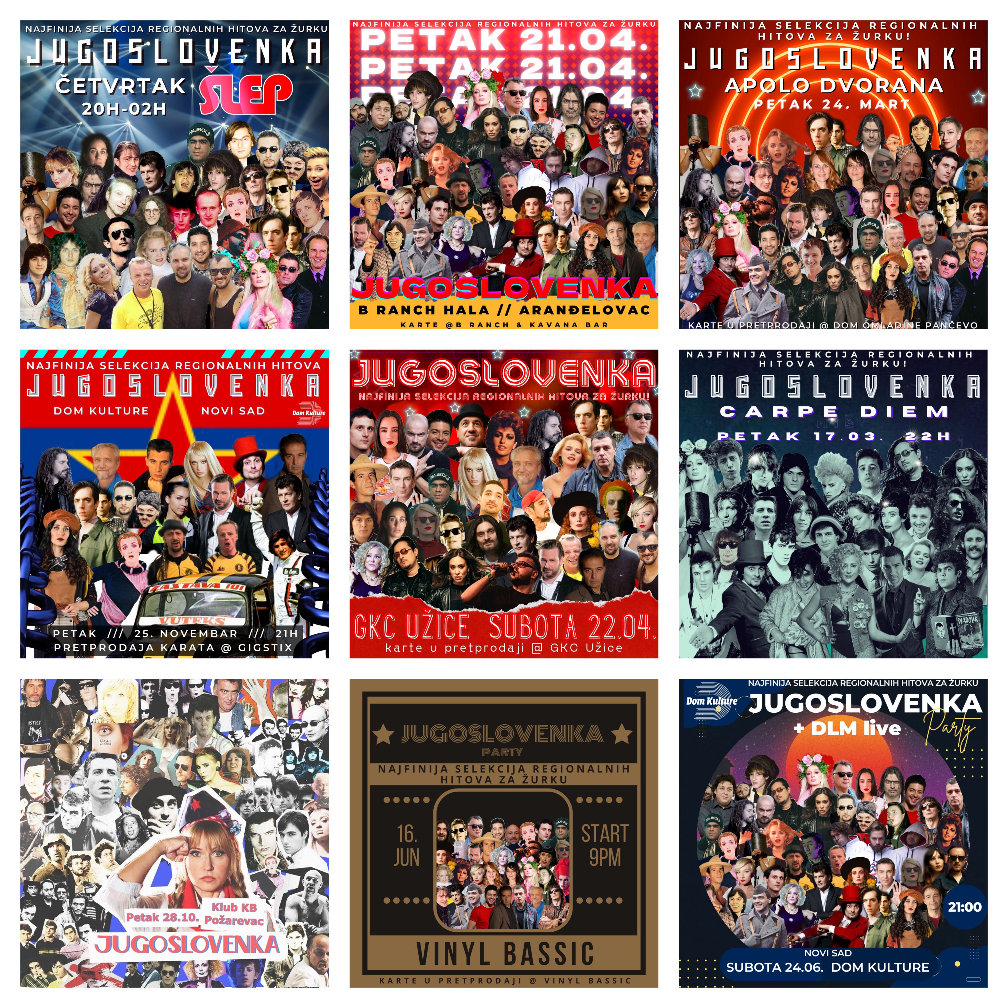 Već pet godina žurka JUGOSLOVENKA puni beogradske klubove Šlep, Štrafta i Pop Quart. Od jeseni 2022. ima i gomilu rasprodatih klubova van Beograda (Novi Sad, Subotica, Banja Luka, Kragujevac, Užice, Pančevo, Kruševac, Zaječar, Niš...). U predhodnih godinu dana održano je preko 80 Jugoslovenki širom Srbije a od ove jeseni kreće se sa organizacijom Jugoslovenki u većim gradovima nekadašnje Jugoslavije.